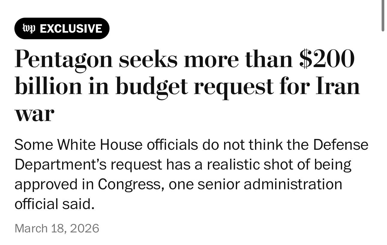 If this is true, then why do we need to approve another $200 billion for a war that’s only going to last another 7-21 days?