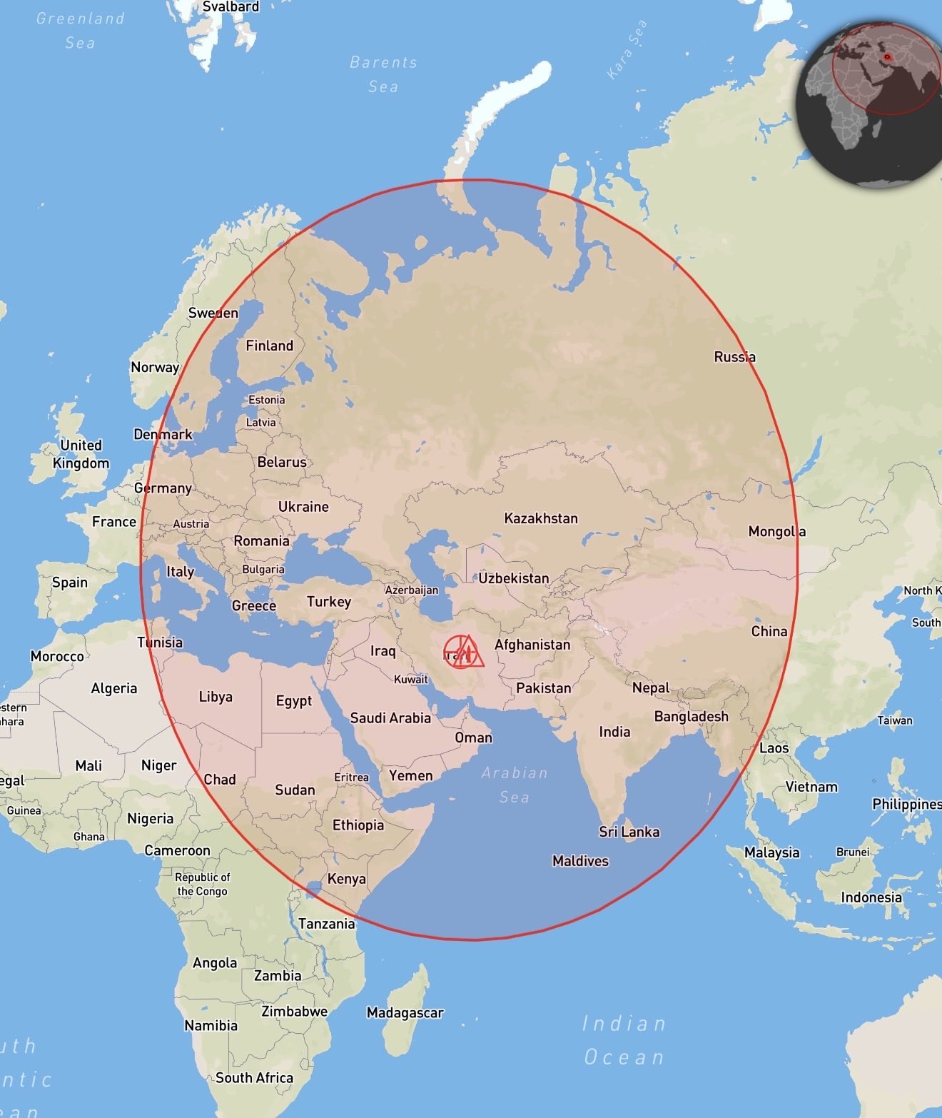 Bigger story here: implied range of an Iranian IRBM from a launch box in central Iran, with a range of ~4500 km (distance to Diego Garcia).